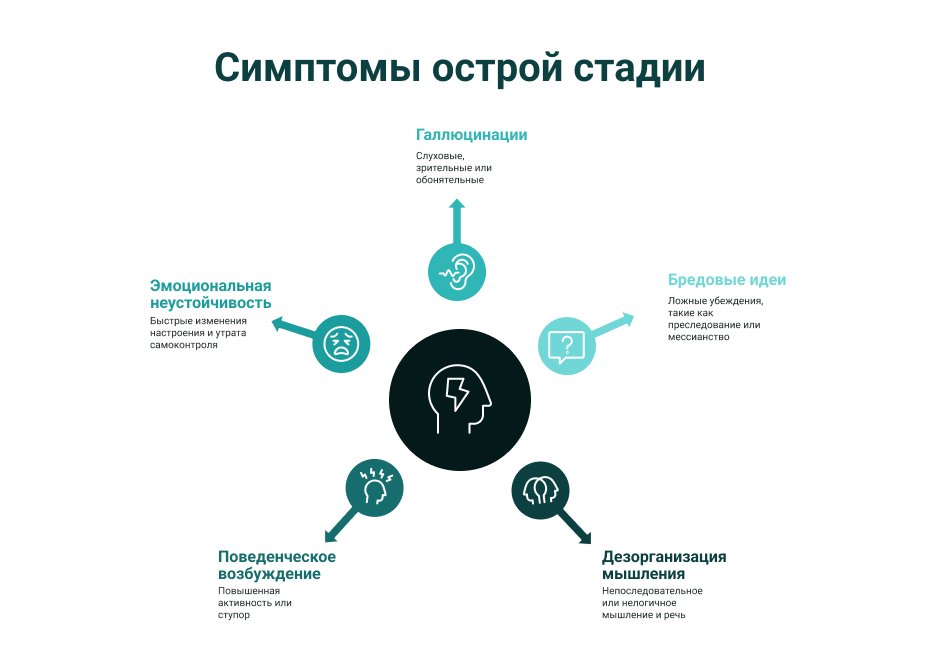 Позитивная (продуктивная) симптоматика включает психотические проявления, которых нет у здорового человека: